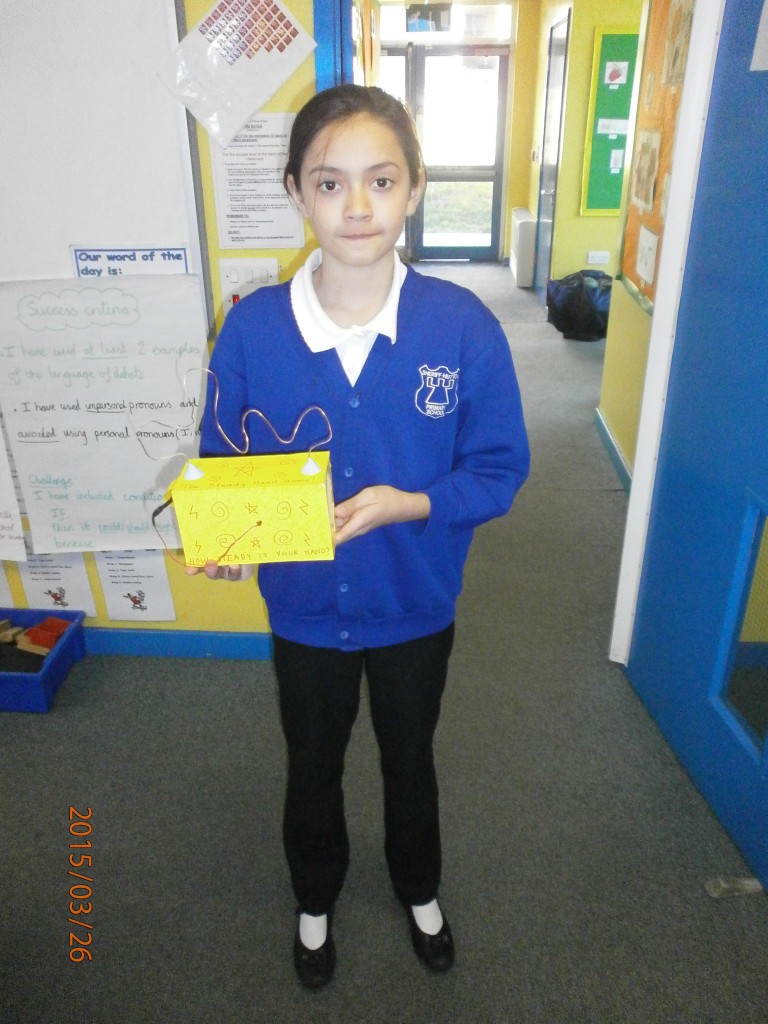 In Howard class the children used their knowledge of electrical circuits to create their own ‘ Steady Hand’ games. First of all they had to construct a frame from pieces of dowel and then they reproduced their own designs.
