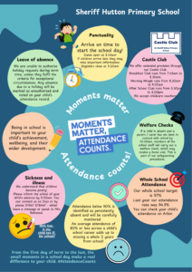 At Sheriff Hutton Primary School we work alongside parents / carers and the Local Authority to support regular attendance at school. We follow the guidance and expectations of the DfE document ‘ Working together to improve school attendance’ (link below).