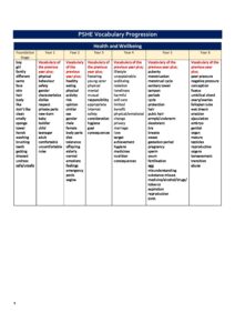 PSHE Vocabulary Progression