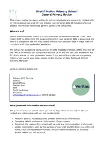 Sheriff Hutton General Privacy Notice
