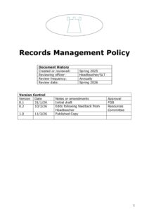 Sheriff Hutton Records Management Policy